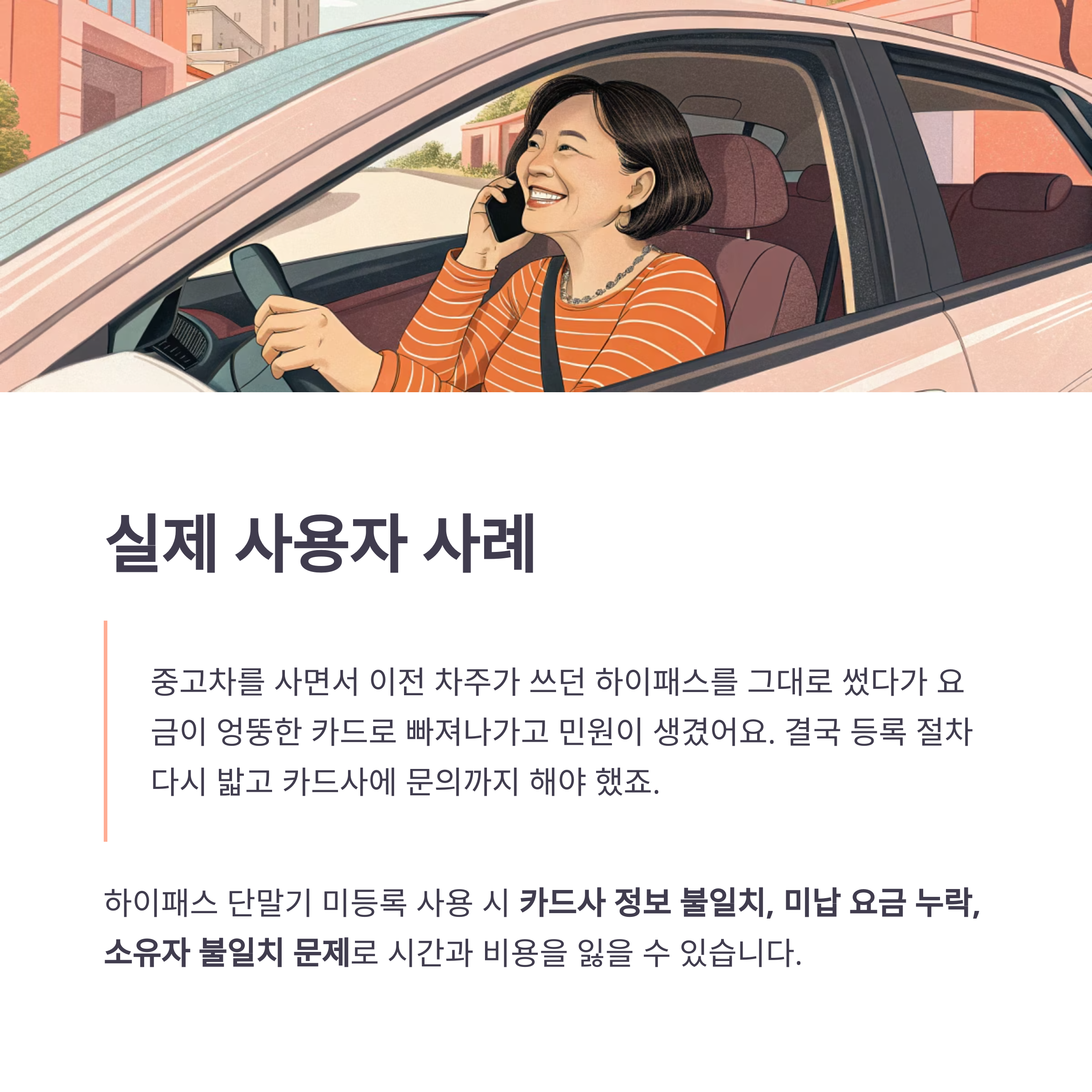 하이패스 단말기를 구매한 후 등록하지 않은 채 사용하는 경우, 고속도로 통행 시 예상치 못한 불이익이 발생할 수 있습니다.