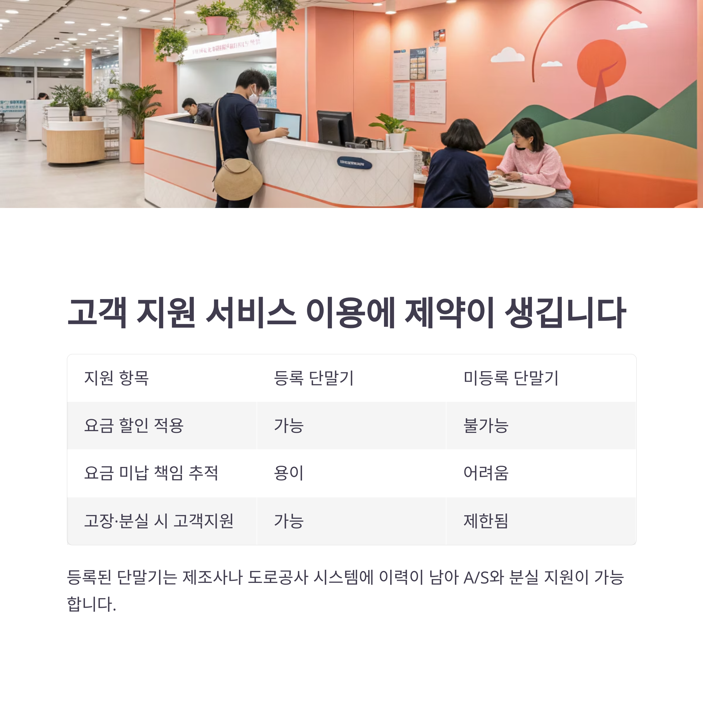 등록 자체는 어렵지 않으며, 대부분의 경우 단말기 제조사 홈페이지 또는 도로공사 사이트에서 간단히 진행할 수 있습니다.