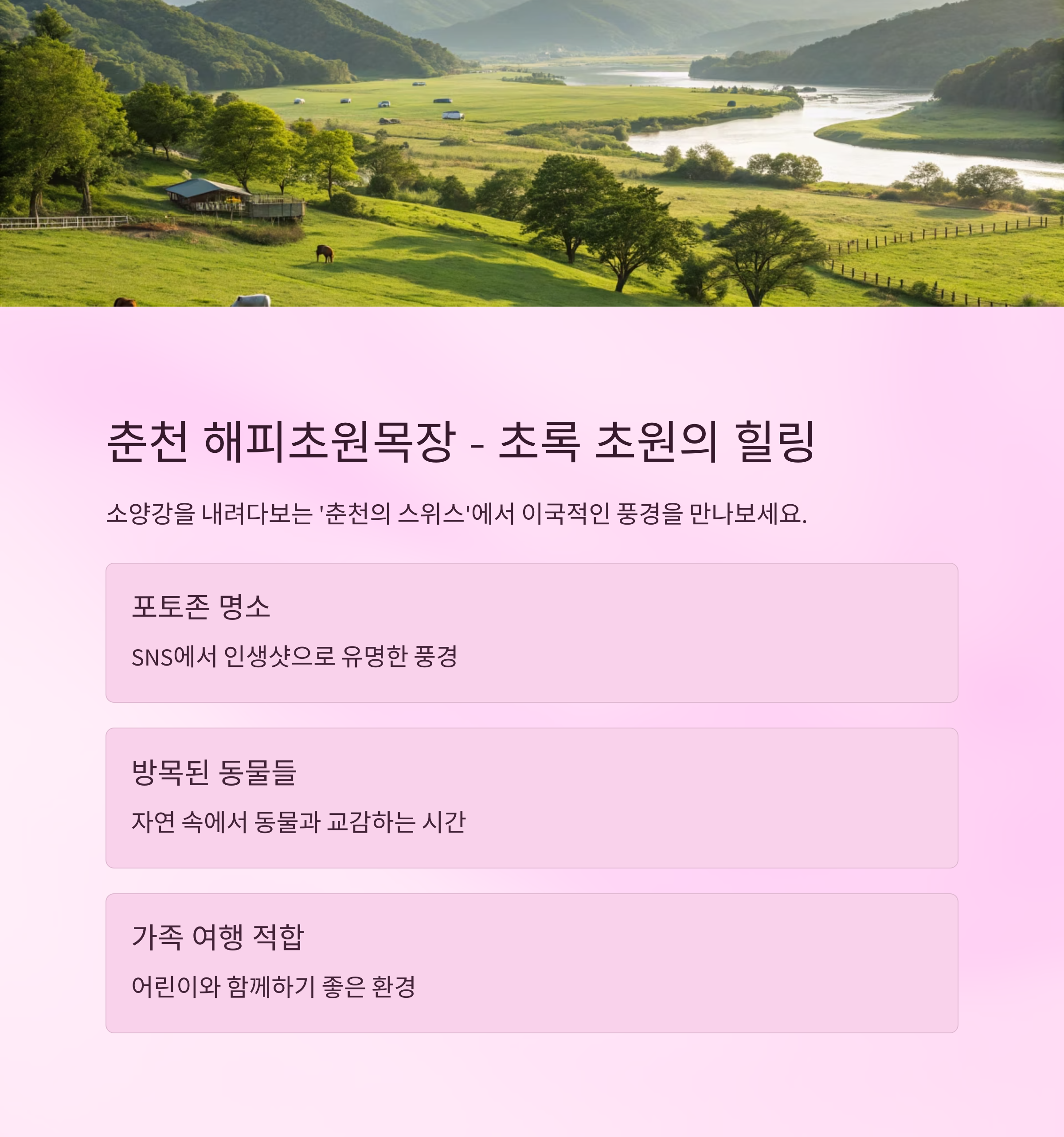 춘천 해피초원목장 – 초록 초원과 동물, 가족 여행지