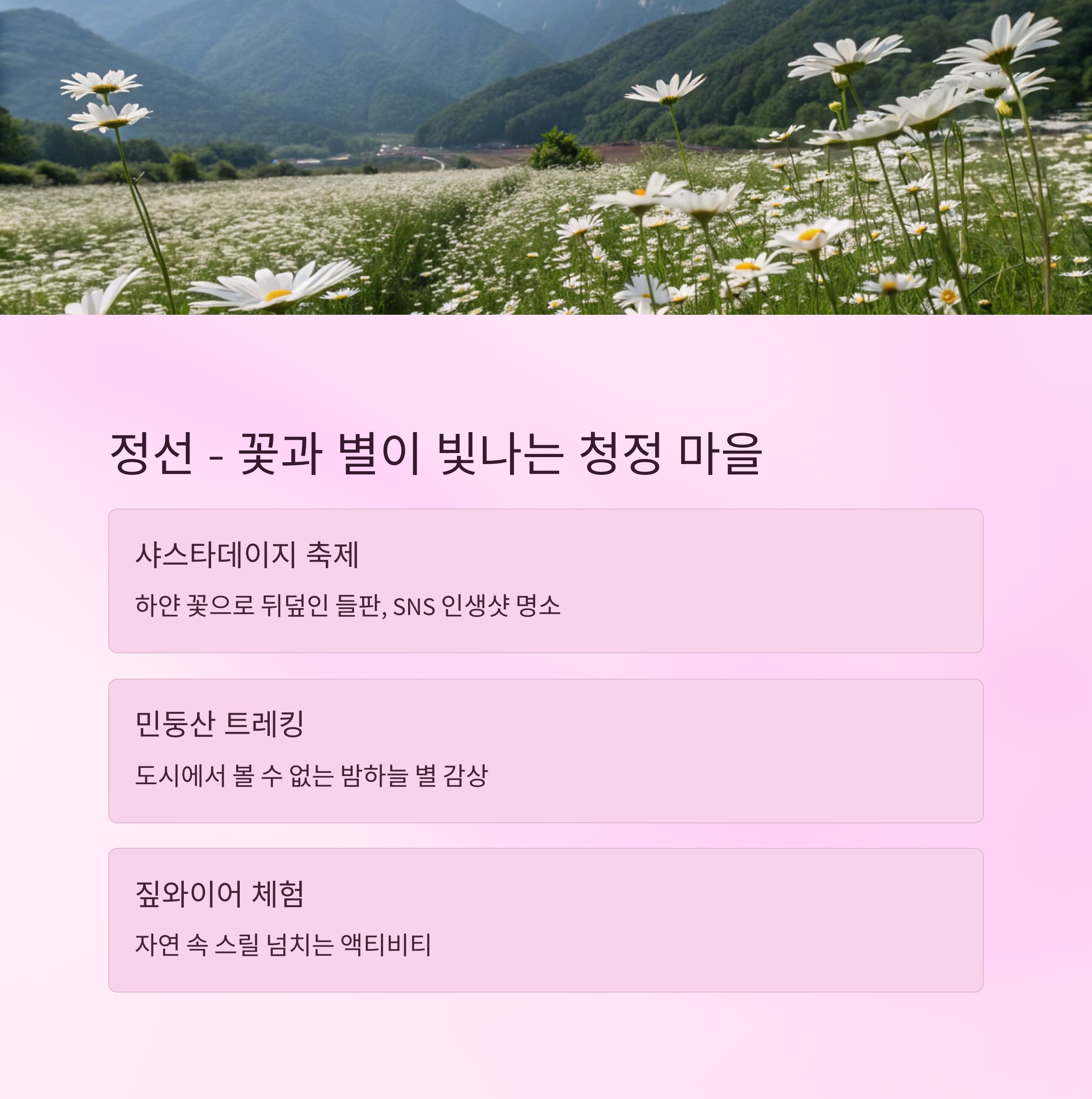 정선 – 꽃과 산, 별이 빛나는 청정 마을 여행