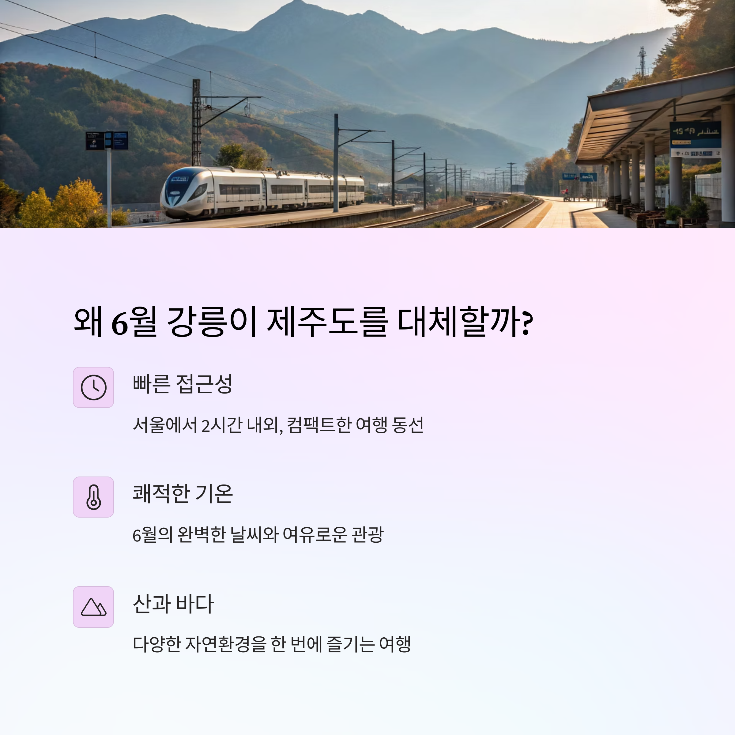 빠르게 이동 가능한 컴팩트한 여행 동선과 서울에서 2시간 내외의 접근성까지 갖추고 있습니다.