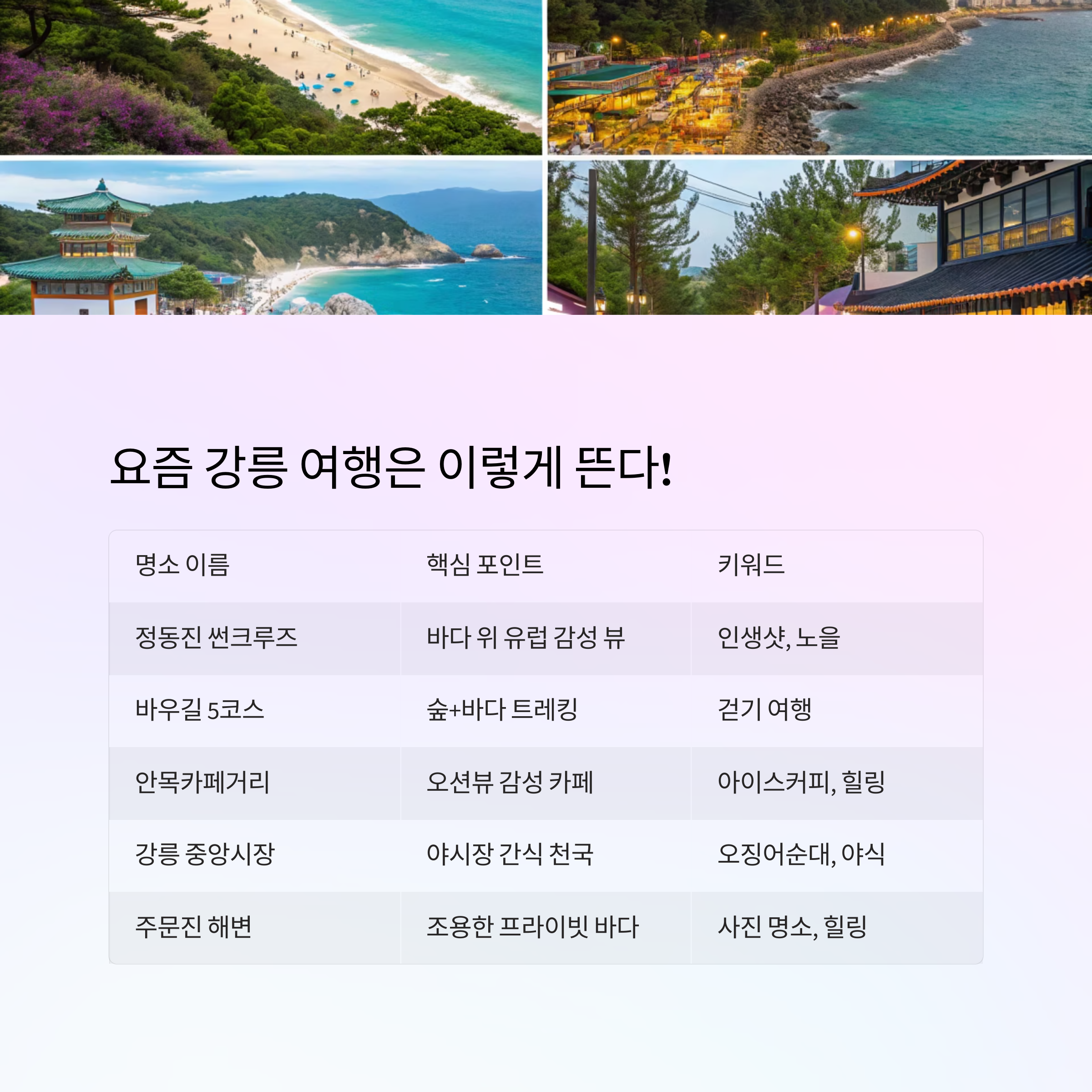 요즘 강릉 여행은 이렇게 뜬다! (요약표)