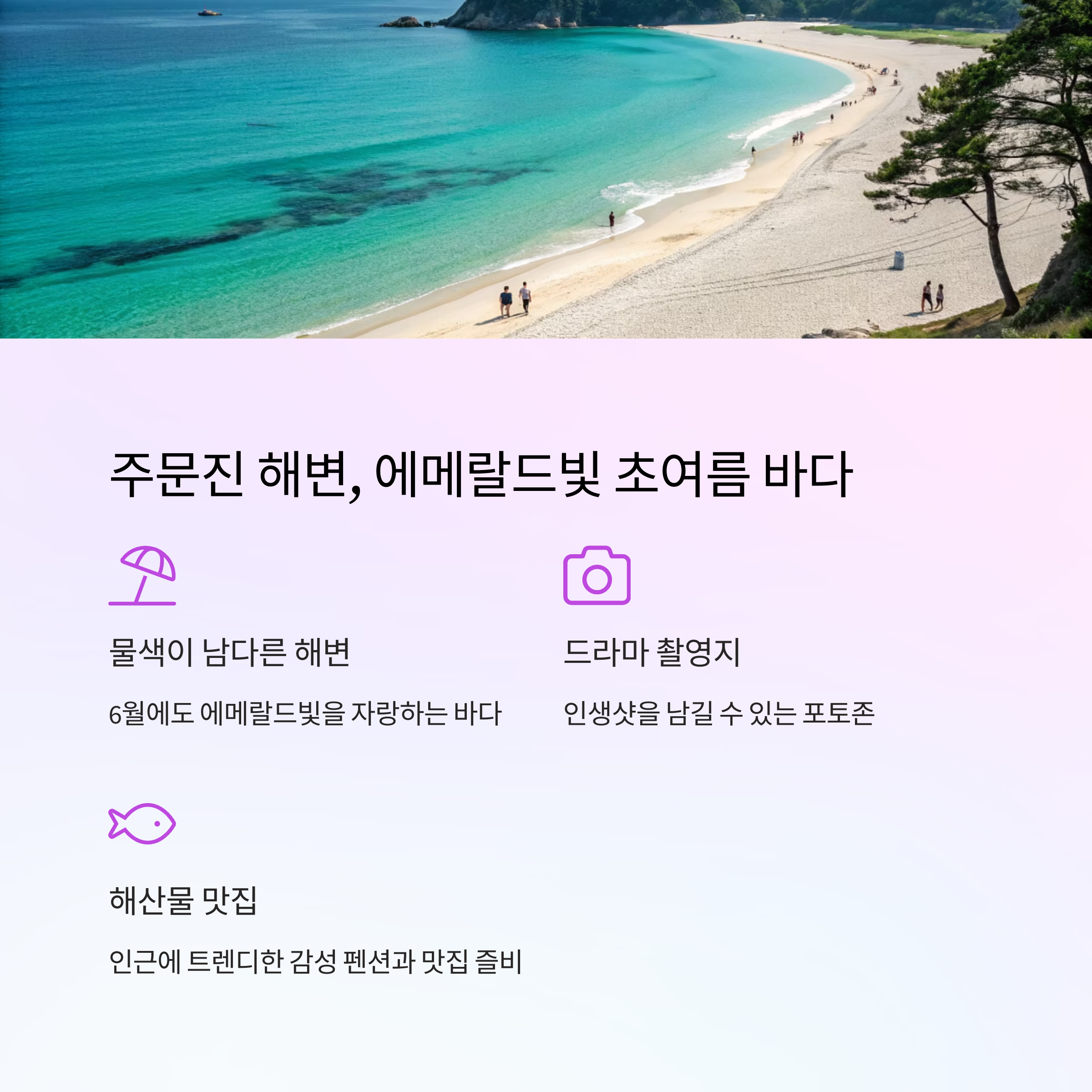 인근에는 해산물 맛집과 트렌디한 감성 펜션도 즐비해